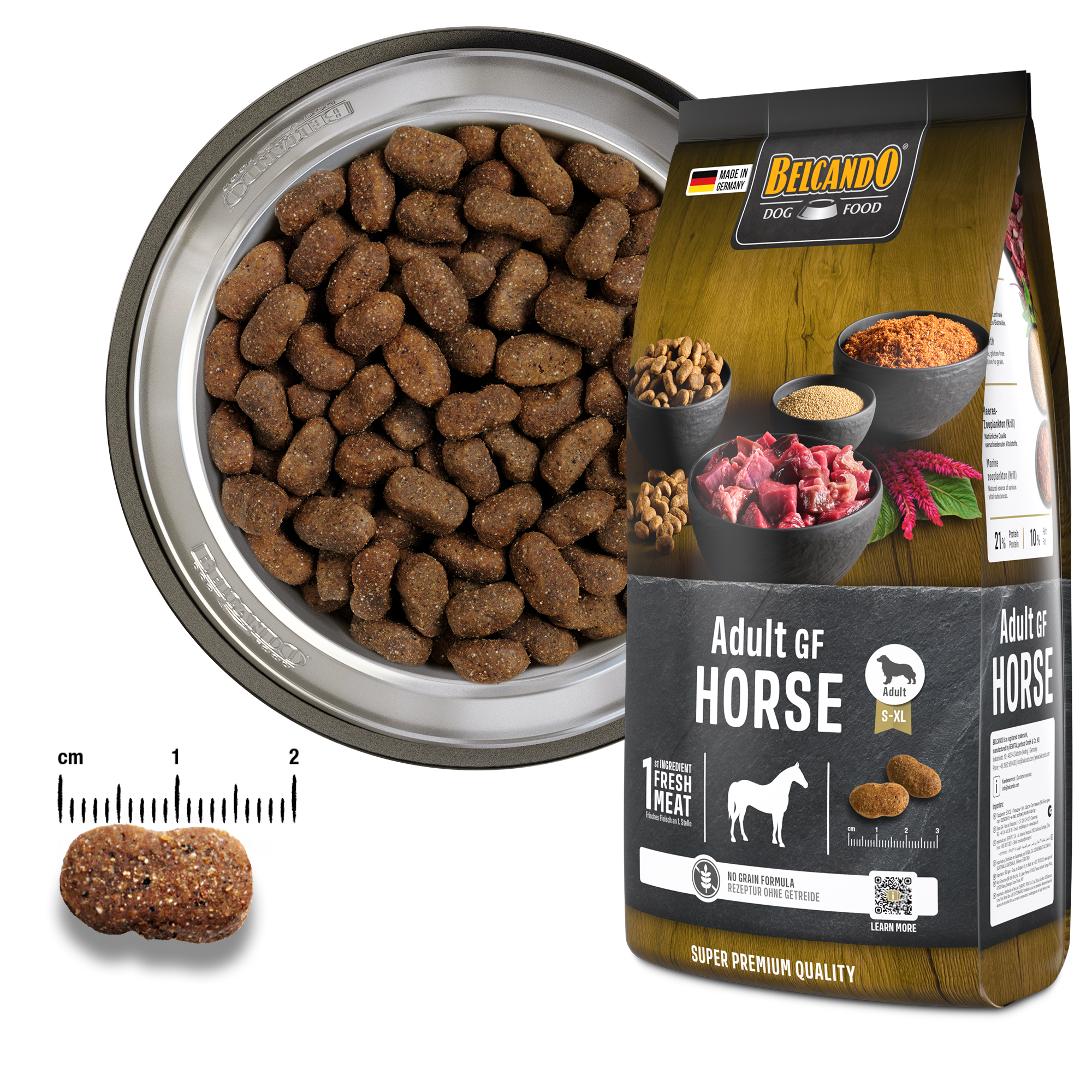 Haben von kaltgepresstes Futter auf das Horse von Belcando umgestellt . Meine Bullyhündin schmeckt es super und wird ebenfalls sehr gut vertragen. Die großen Kroketten sind super da sie kleine meistens nur in eins runterschluckt.